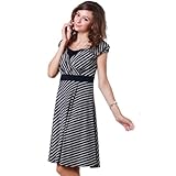 スウィートマミー (Sweet Mommy) ふんわりボーダー 授乳 ワンピース ネイビー M