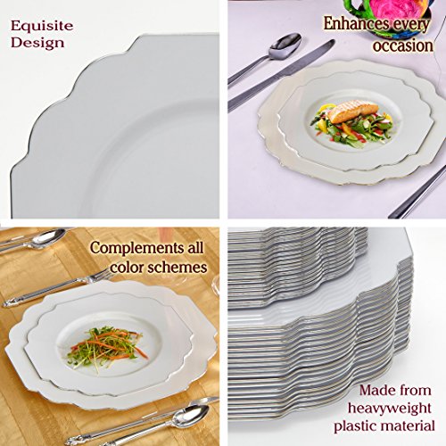 バロックコレクションホワイトsilver-edgedサイドプレート波リムデザイン使い捨て食器類 – Great forフォーマルお出かけや結婚式、、、( Set of 20 )