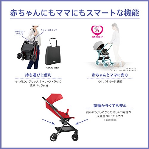 Aprica (アップリカ) コンパクトベビーカー ナノスマート (nano smart) ポンペイアンレッド RD ※従来の半分サイズにたためる 【持ち運び用キャリーバッグ付属】 2025536
