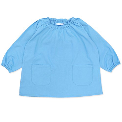 - 当店人気No1の無地スモックです。撥水効果があり、水や汚れに強く、シワになりにくい生地を使用しています。洗い替えに何枚かあると便利です。