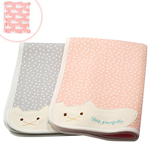&y おむつ替えシート おむつ替えマット 2枚組 綿100% コットン 吸水 抗菌 消臭 防水 持ち運び 洗濯可 巾着袋付き 出産祝い 70×50cm (水玉柄2枚セット)
