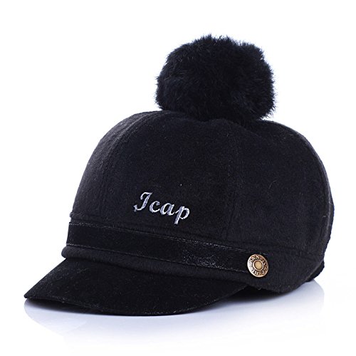 (アバラナサ)Abaranasa子供の野球キャップ(サイズ:SとM)女の子 男の子両用 秋冬フェルトボール帽子 可愛いハット選べる5色 (S, ブラック)
