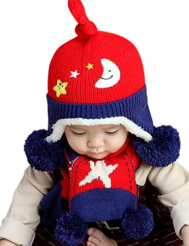 (アバラナサ)Abaranasaベビーニット帽子( フリーサイズ:46-50cm)ハットとても保温と可愛い 男の子 女の子兼用 冬キャップ (レッド)