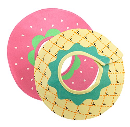 (アレックスユール) ベビー コットンビブ 360°回転 フルーツパターン おしゃれ スタイ 防水よだれかけ 4層厚さ 2枚セットラウンドビブ