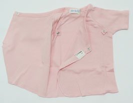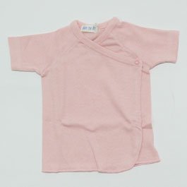 - 前面がスナップボタンで開く、あわせタイプの半袖の短肌着です。