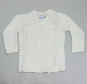 形は日本的ですがアメリカのメーカー商品なので日本の"あわせ"とは左右逆になり、日本の短肌着より身体にフィットする感じです。