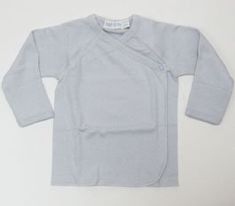 この短肌着は少し薄手の伸縮性に富んだシングルリブ生地を使用し、長袖なので春秋冬の3シーズンにお勧めです。前面はスナップボタンで開くあわせタイプです。