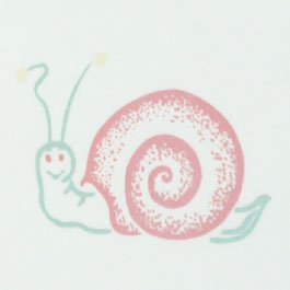 白地にピンクの殻のかたつむりのイラストがプリントされ、縁取りや首周りもピンクになっています。