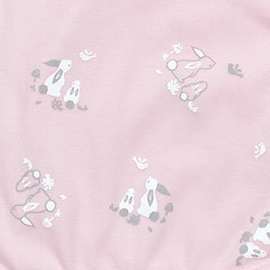 - やさしいピンク地に白とグレーでウサギの親子のイラストが描かれています