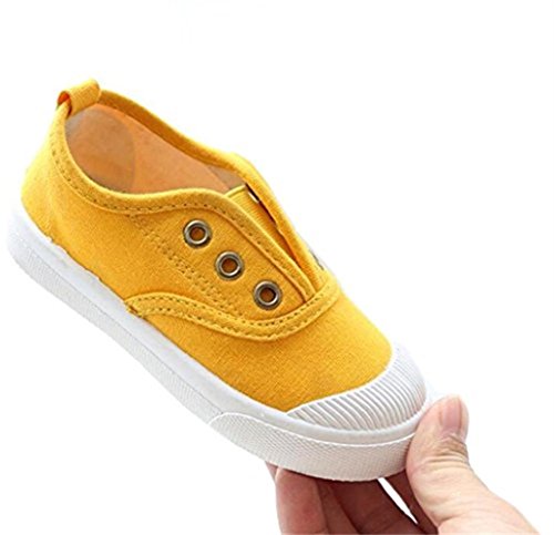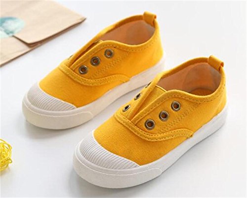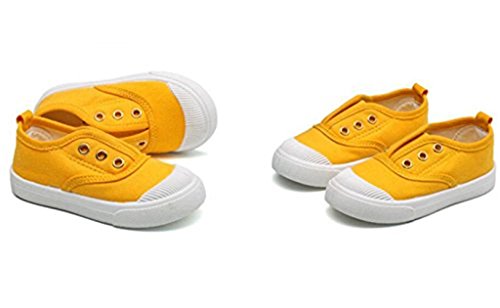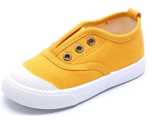 WUIWUIYU 男の子 女の子 スニーカー 子供 通学靴 紐なし 軽量 コンフォート 歩くやすい 通気 キャンバスシューズ イエロー 14.5cm