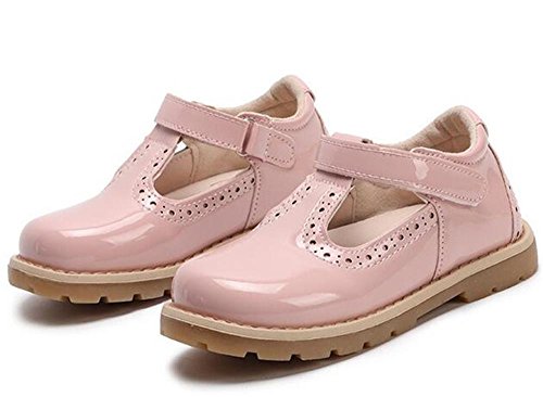 WUIWUIYU 女の子 ローファー フォーマルシューズ Tストラップ 超軽量 エナメル調 防水 コンフォート 通学靴 ピンク 16cm