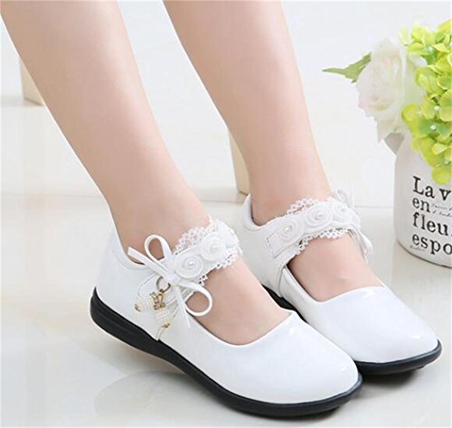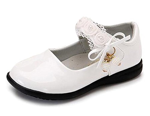 WUIWUIYU ドレスシューズ 女の子 フォーマル靴 お花飾り 可愛い ベロクロ式 履きやすい 軽い エナメル調 滑り止め 結婚式 発表式 通学靴 ホワイト 15.5cm