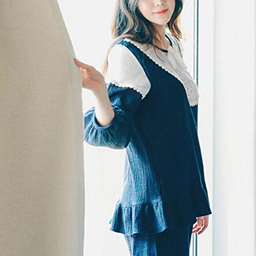 (エスライフ)S-Lifeeling 授乳服 マタニティウェア 綿 柔らかい 産後 授乳口 上下セット コットン ソフト かわいい エレガント 花柄 レース 七分袖 リボン付き 大きいサイズ ゆったり 授乳 やすい マタニティ服