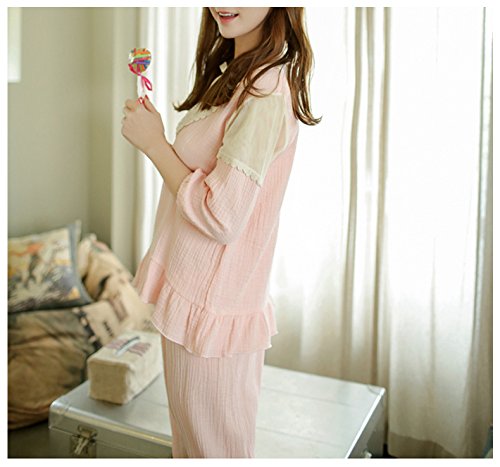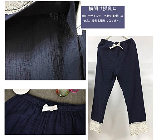(エスライフ)S-Lifeeling 授乳服 マタニティウェア 綿 柔らかい 産後 授乳口 上下セット コットン ソフト かわいい エレガント 花柄 レース 七分袖 リボン付き 大きいサイズ ゆったり 授乳 やすい マタニティ服