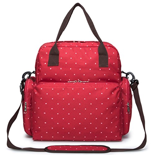 (エンジェルムーン) AngelMoon マザーズバッグ 大容量 軽量 多機能 リュック ショルダーバッグ ママバッグ 3WAY オシャレ オムツ カジュアル カラフル キャンバス キーホルダー キルト キャンパス キャリー (Bタイプ-レッド)
