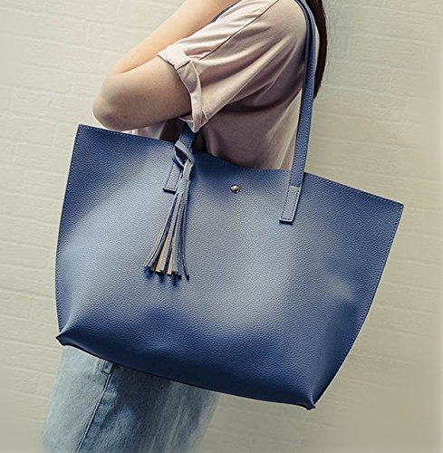 (ガラーボ) GALARVO レザーバッグ バッグ トートバッグ レディース 大容量 合皮 通勤 通学 学校 マザーズバッグ (ブルー)
