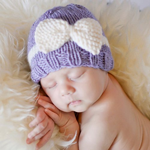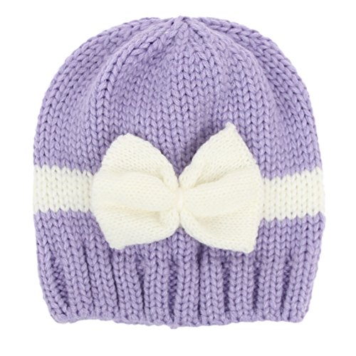 (キッズ ハウス)KIDS HOUSE  ベビーニット帽子 編みハット 出産お祝いギフト 赤ちゃん編む帽 リボン付き (ラベンダー)