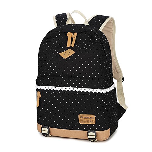 (キープビン)Keepbin リュックサック リュック ディパック 人気 高校生 中学生 学生 通学 女子 レディース かわいい 大容量 おしゃれ ドット柄 レース キャンバス ブラック