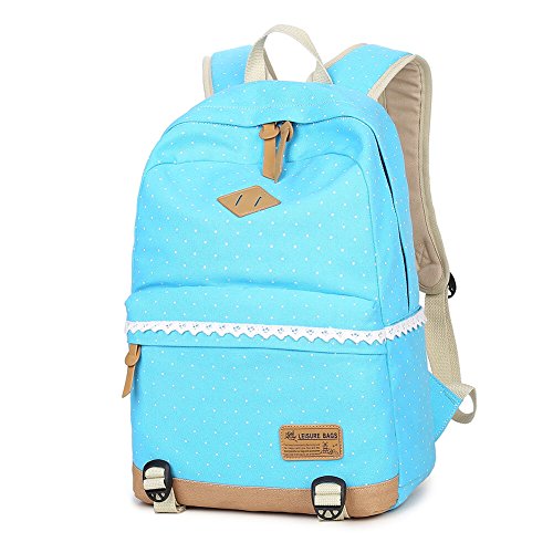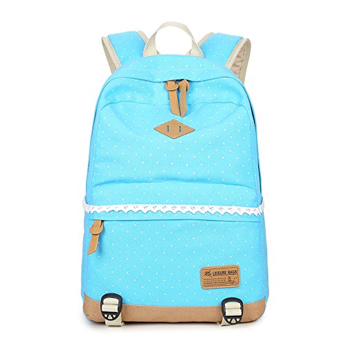 (キープビン)Keepbin リュックサック リュック ディパック 人気 高校生 中学生 学生 通学 女子 レディース かわいい 大容量 おしゃれ ドット柄 レース キャンバス スカイブルー