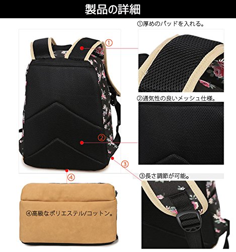(キープビン)Keepbin リュック 花柄 通学 リュックサック 人気 高校生 中学生 カバン リュック おしゃれ レディース 大人 大容量 登山 通勤 旅行 遠足 ブラックB