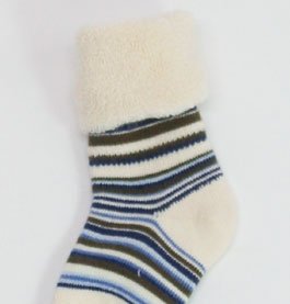 (グレェド) Groedo オーガニックコットン ベビー 裏パイル ソックス きなり・茶・水色ストライプ サイズ00 (8~9cm 目安月齢~6ヶ月)