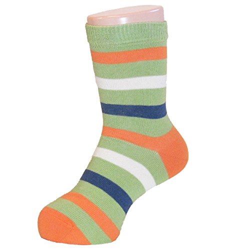 (グレェド) Groedo キッズソックス サイズ3-4 ( 14.5 - 16.5cm ) 黄緑・オレンジ・きなり・紫ストライプ オーガニックコットン