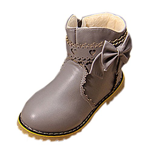 (コ-ランド) Co-land プリンセス風 ショートブーツ ベビー 女の子 フラットシューズ キッズ 秋冬 蝶結び あったか 裏起毛 保温防寒 子供靴 フォーマル グレー 16.5cm