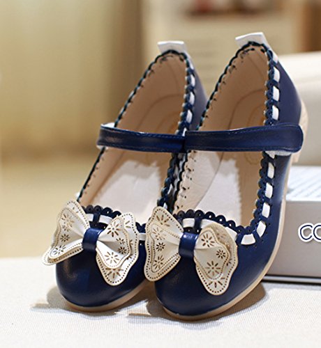 (コ-ランド) Co-land プリンセス 子供靴 キッズ フラットシューズ 女の子 ガールズ ベルクロシューズ 蝶結び バイカラー 女児 ベビー フォーマル 結婚式 ネイビー 16cm