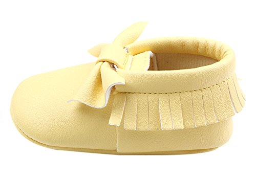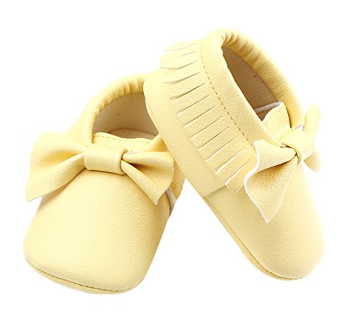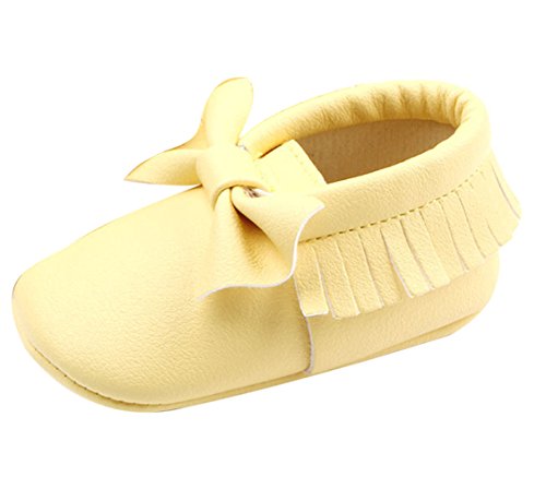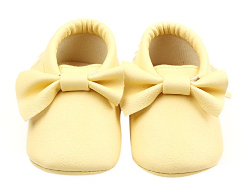 (コ-ランド) Co-land 子供靴 ベビーシューズ フォーマルシューズ 歩行靴 新生児 女児 赤ちゃん用 多色展開 無地 蝶結び飾り 発表会 結婚式 (12, Fイエロー)