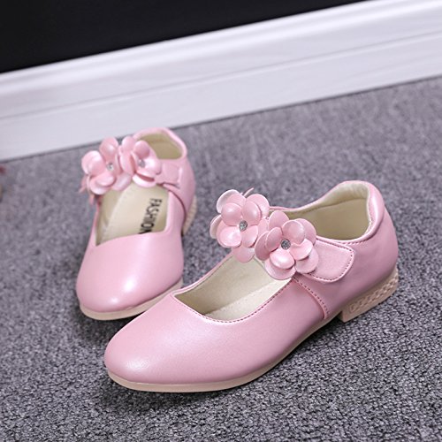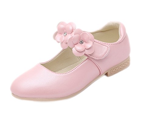 (コ-ランド) Co-land 子供靴 履きやすい キッズ フォーマルシューズ 女の子 フラット ガールズ ドレスシューズ PUレザー製 花飾り 女児 ベビー 結婚式 ピンク 19.9cm