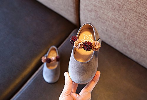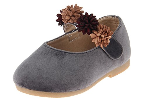 (コ-ランド) Co-land 女の子 シューズ フォーマル 子供靴 プリンセス 靴 お花飾り お姫様 キッズ シューズ 春秋 発表会 入園式 グレー 内寸18.5cm
