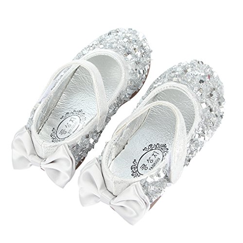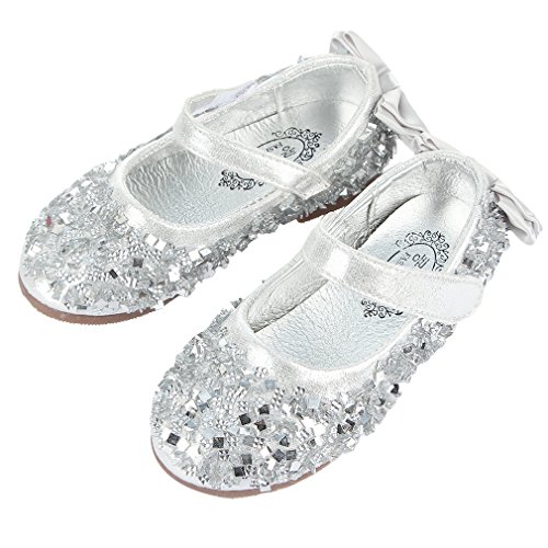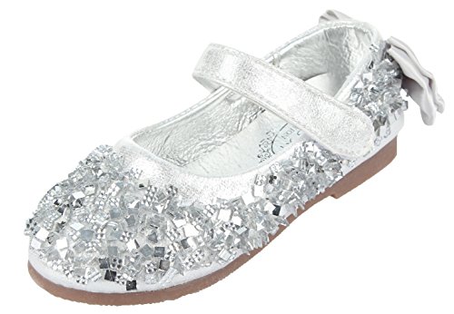 (コ-ランド) Co-land 子供靴 履きやすい キッズ フォーマルシューズ ラインストーン飾り ピカピカ 女の子 フラット ガールズ ドレスシューズ 蝶結び 女児 ベビー 結婚式 シルバー 15.8cm