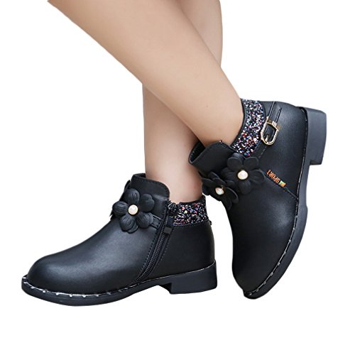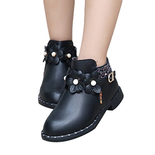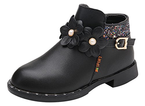 (コ-ランド) Co-land 可愛い ショートブーツ キッズ 女の子 花飾り フラットシューズ ガールズ 秋冬 ドレスシューズ 子供靴 ベビー ジュニア 通園通学 ブラック 19.2cm