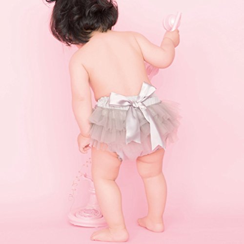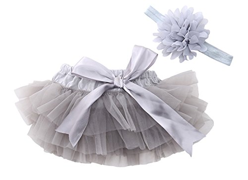 (コ-ランド) Co-land ベビー ブルマ 女の子 おむつカバー ショートパンツ 赤ちゃん 可愛い チュール リボン飾り ヘアバンド付き L グレー