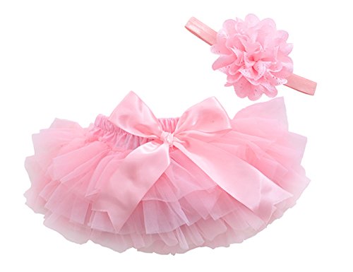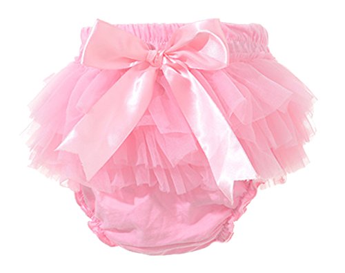 (コ-ランド) Co-land ベビー ブルマ 女の子 おむつカバー ショートパンツ 赤ちゃん 可愛い チュール リボン飾り ヘアバンド付き M ピンク
