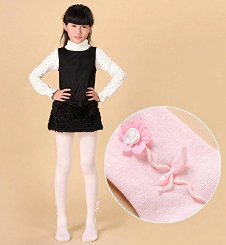 (コ-ランド) Co-land 子供用 タイツ ガールズパンスト こどもスパッツ キッズ 女の子レギンス 美脚ストッキング 花リボン ジュニア 吸汗抗菌 ピンク サイズ2