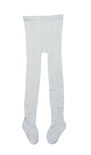 (コ-ランド) Co-land 子供用 タイツ ガールズパンスト こどもスパッツ キッズ 女の子レギンス 美脚ストッキング 花リボン ジュニア 吸汗抗菌 ホワイト サイズ7