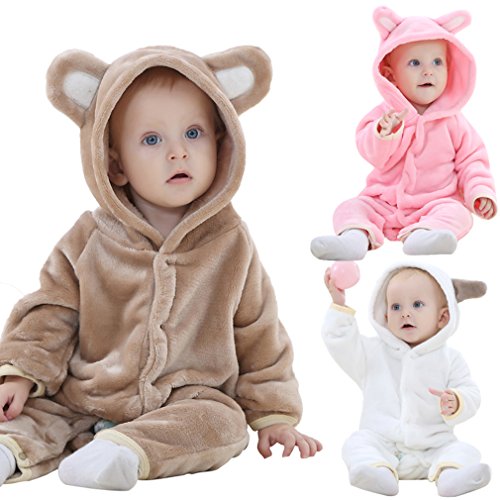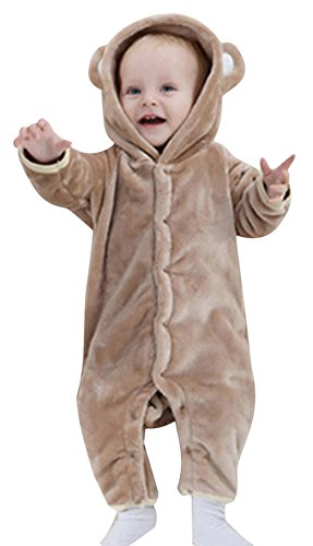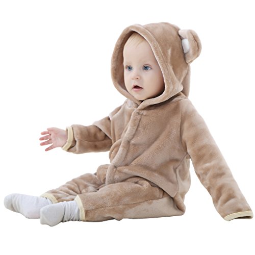 (コ-ランド) Co-land ベビー ロンパース 動物 着ぐるみ クマ コスチューム あったか パジャマ 女の子 男の子 カバーオール 出産祝い ブラウン 100