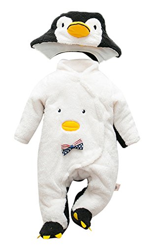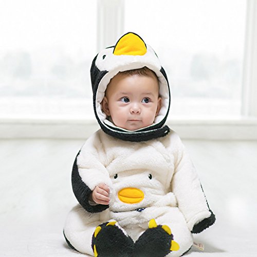 (コ-ランド) Co-land 着ぐるみ ベビー服 赤ちゃん ロンパース キッズ 可愛い 動物 コスチューム 防寒着 撮影 出産祝い 新生児 カバーオール 男の子 女の子 ペンギン白 90