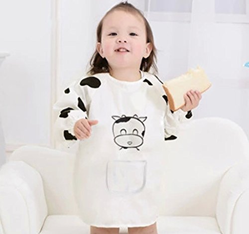 (コ-ランド) Co-land スモック ベビービブ ベビーエプロン 食事用 長袖 赤ちゃんスタイ よだれかけ 新生児 男の子 女の子 乳牛柄 防水ビブ 保育園 100サイズ
