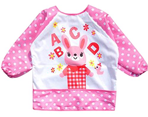 (コ-ランド) Co-land スモック ベビービブ ベビーエプロン 食事用 長袖 赤ちゃんスタイ よだれかけ 新生児 男の子 女の子 アニマルプリント 防水ビブ 保育園 ローズ英語 110