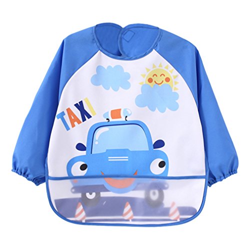 (コ-ランド) Co-land ベビー お食事用 エプロン 赤ちゃん 長袖 防水 ポケット付き かわいい お絵描き 粘土遊び 離乳食 保育園用 90 ブルー