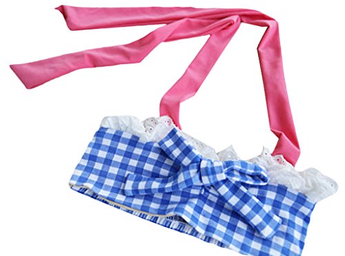 (コ-ランド) Co-land ベビー水着 ビキニ ショーツ キャップ付き 3点セット キッズみずぎ スイムウエア 子供用 女の子 女児 チェック柄 蝶結び ガールズ 夏 ビーチ ブルー L