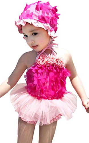 (コ-ランド) Co-land ベビー水着 女児水着 キャップ付き 3点セット キッズみずぎ スイムウエア 子供用 女の子 チュチュフリル ガールズ 夏 ビーチ ローズ L