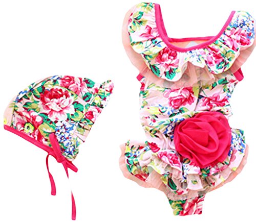 (コ-ランド) Co-land ベビー水着 女児水着 ワンピース キャップ付 2点セット キッズみずぎ スイムウエア 子供用 女の子 花柄 ガールズ 夏 ビーチ ピンク XL