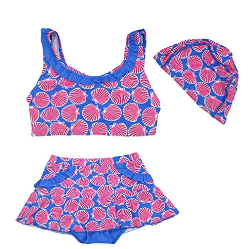 (コ-ランド) Co-land ベビー水着 女の子 セパレート キャップ付き 3点セット ジュニア水着 スクール 花柄 フリル キッズみずぎ スイムウエア 子供用 ガールズ ブルー 140