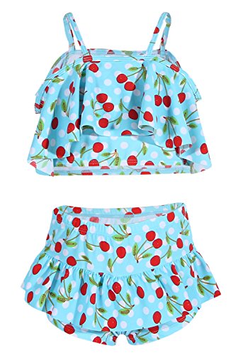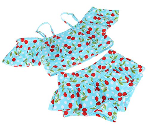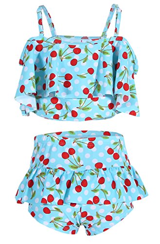 (コ-ランド) Co-land 女の子 水着 セパレート 2点セット タンキニ 子供 キッズ 女児 ガールズ スイムウェア チェリー柄 ベビー ビキニ ライトブルー Sサイズ