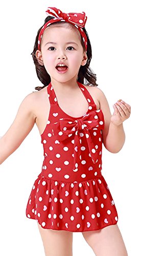 (コ-ランド) Co-land 女の子 水着 ワンピース みずぎ 子供 キッズ 女児 ガールズ スイムウェア ドット柄 ベビー ビキニ 蝶結び飾り レッド Lサイズ