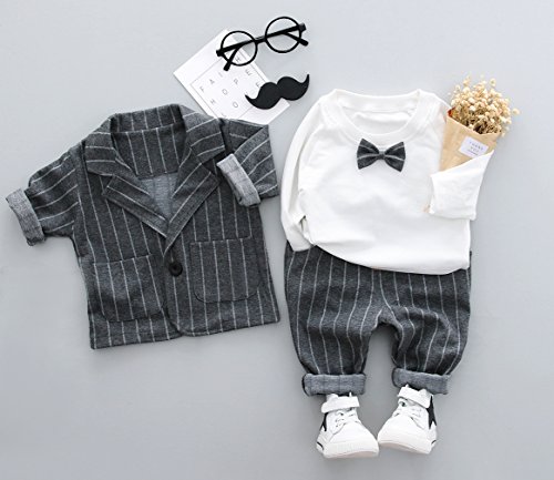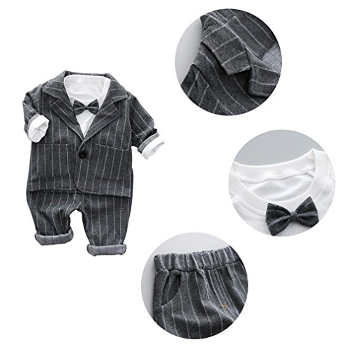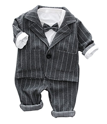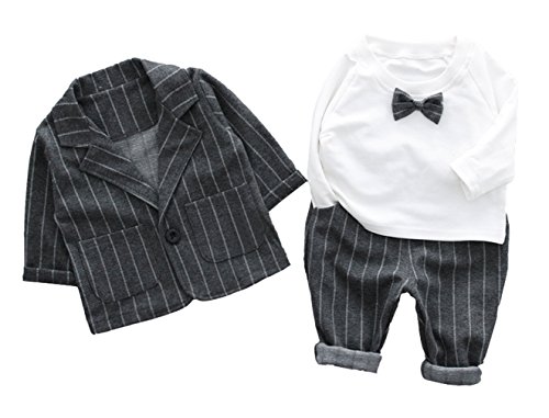 (コ-ランド) Co-land ベビー フォーマル スーツ 3点セット キッズ服 男の子 長袖 ジャンケット ズボン tシャツ 結婚式 リボン飾り 10 グレー
