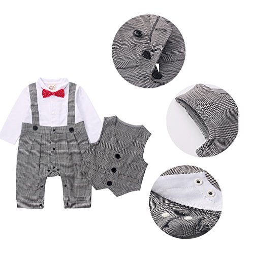 - 蝶ネクタイつき、かっこいい男の子フォーマルロンパースです。